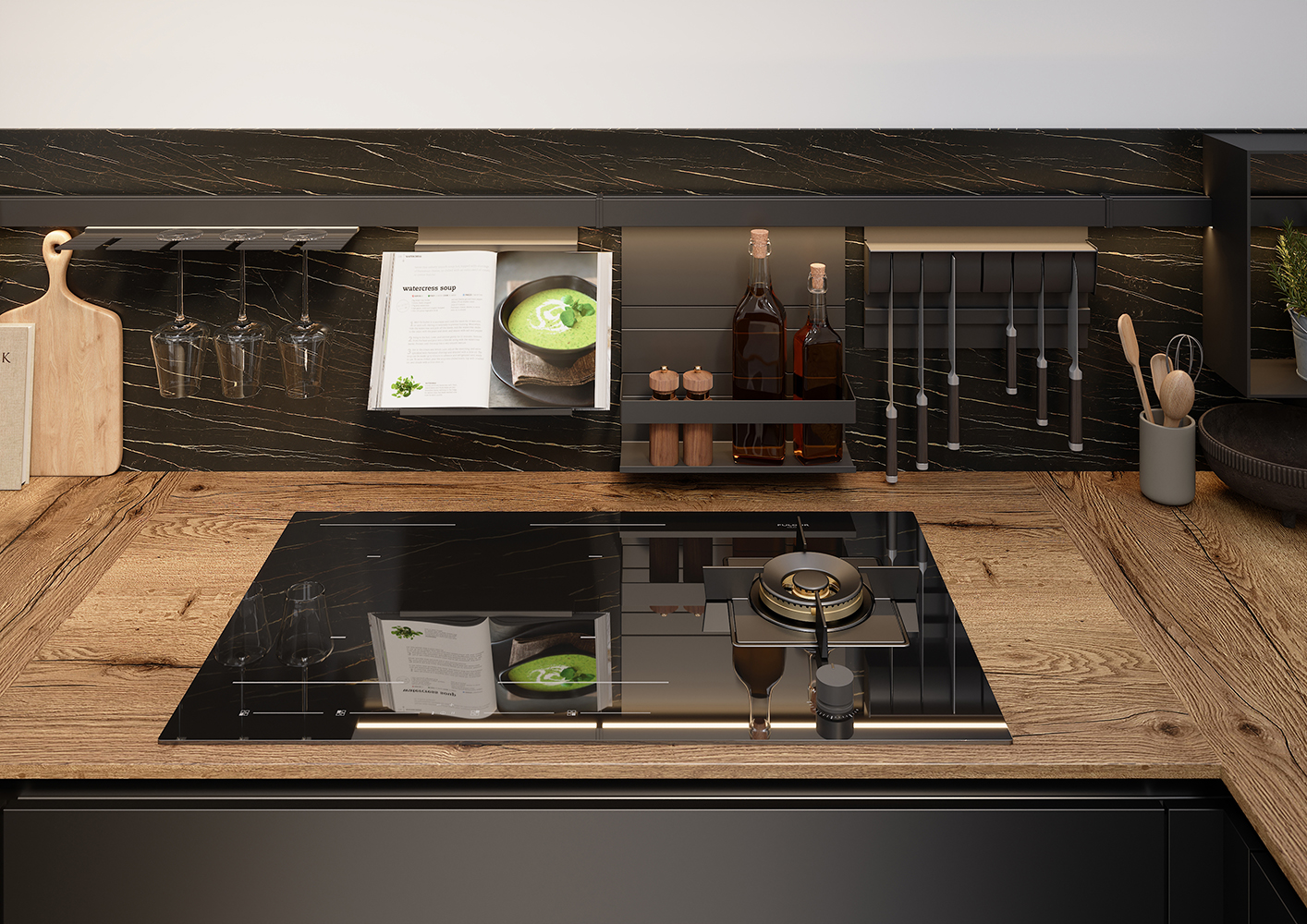 Our kitchens offer a huge selection of colors and surfaces in ultra matte, lacquered and anti-fingerprint. Innovative slim countertops, LED lighting with dimming and color change complement the modern vision of your home.